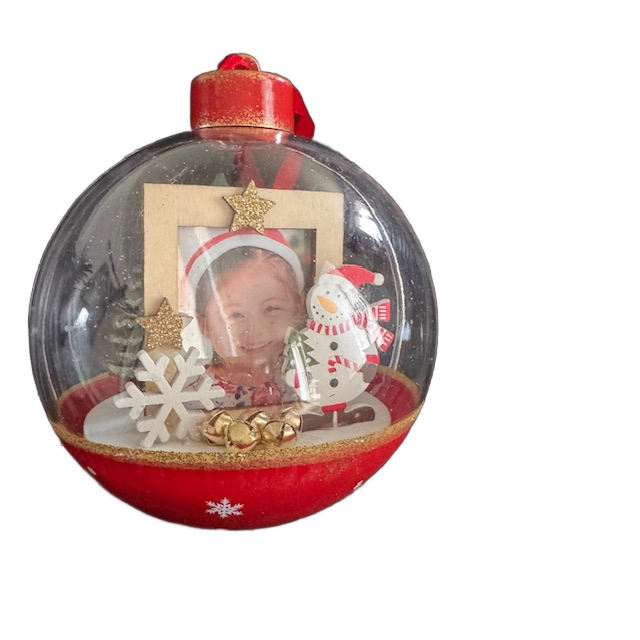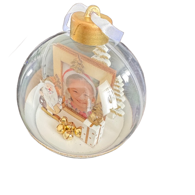 Boule de Noël avec décor intérieur et possibilité de mettre une photo