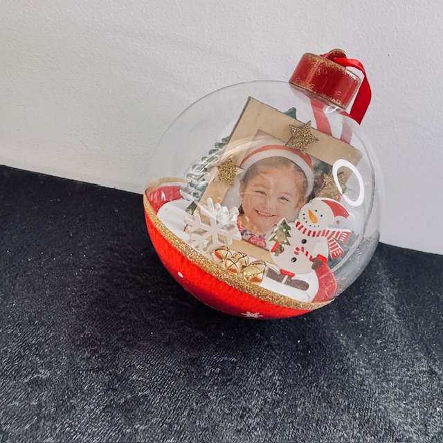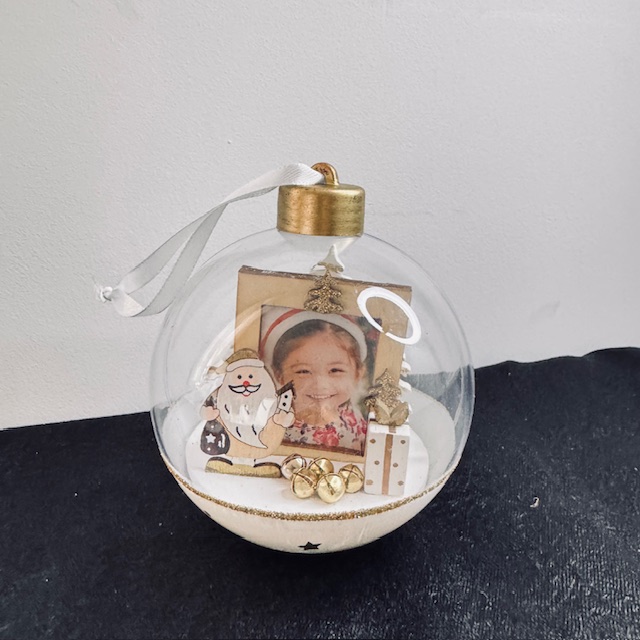 Boule de Noël avec décor intérieur et possibilité de mettre une photo d’identité